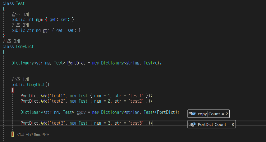 out 장점은 여러값 반환 가능과 메모리의 효율성 초기화 권장 값이 아닌 참조로 전달 메서드로부터의 출력용 _ 메서드에서 성공 여부와 결과 값을 함께 반환할 때 유용 ex ) 두 정수를 입력받아서, 두 정수의 덧셈, 뺼셈, 곱셈 결과를 반환 public Main() { Console.WriteLine("두 정수를 입력하세요 :"); if(int.TryParse(Console.ReadLine(), out int a ) && (int.TryParse(Console.ReadLine(), out int b))) { int sum , sub , multi = 0; CalculationResult( a, b , out sum , out sub , out multi); Console.WriteLine($"sum : ..